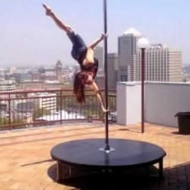The podium is circular with a 5'3" diameter. It is not square with corners and flat sides reducing the dance area - and 1600mm is the ideal size.... so you don't fall off the edge!!